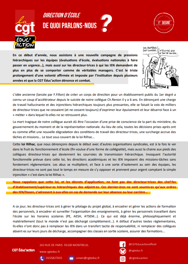 - Direction d’école. L’autorité fonctionnelle est à combattre et il y a urgence.