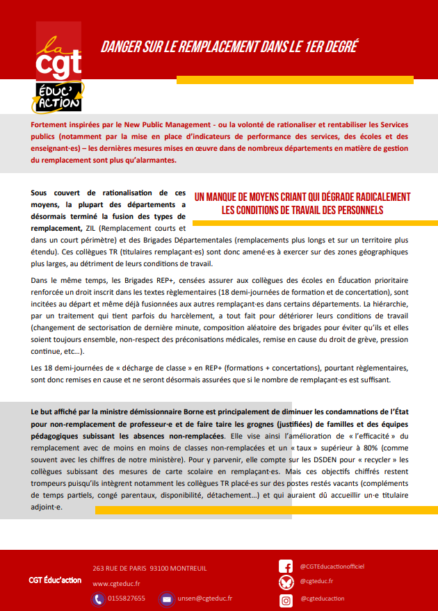 - Tract : « je suis remplaçant.e, comment ça marche? » : les types de postes, les primes et indemnités et les infos pratiques avec une FAQ