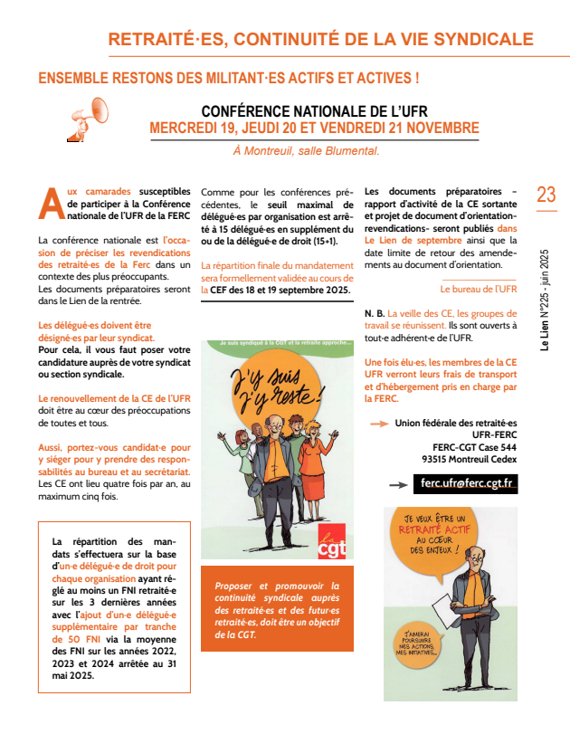 CONFÉRENCE NATIONALE DE L’UFR – Mercredi 19, jeudi 20 et vendredi 21 novembre 2025 : Montreuil (salle Blumental)